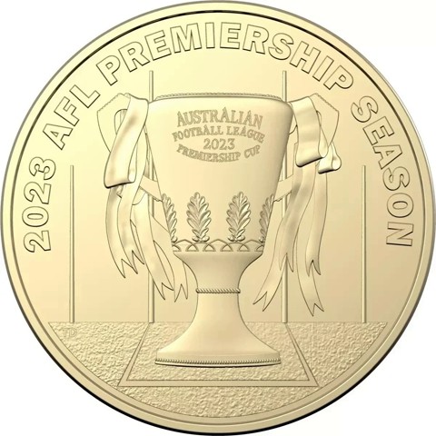 coin’s reverse design illustrates the intricate engraving captures the elegance and grandeur of the AFL trophy (Created by Cash's Awards in Frankston, Victoria), from its graceful handles to the meticulously etched detailing that symbolizes the essence of triumph. The inscription accompanied date - coin name - "2023 AFL PREMIERSHIP SEASON" around above.