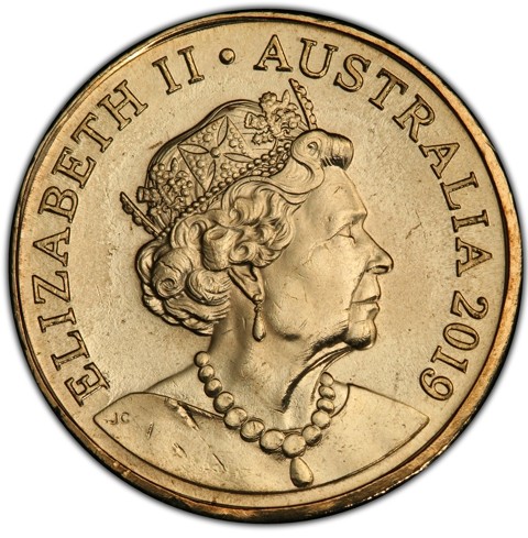 6th crowned portrait of HM Queen Elizabeth II facing right (the Commonwealth effigy), wearing the George IV State Diadem, the Coronation Necklace and Earrings framed by inscriptions “ELIZABETH II,” “AUSTRALIA,” and the coin's mintage year “2019" below.