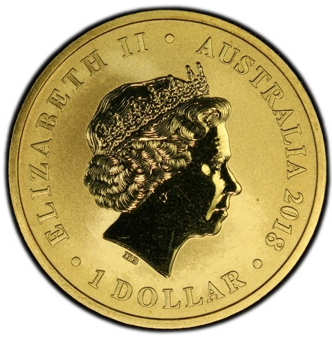 Fourth crowned portrait of HM Queen Elizabeth II facing right, wearing the Girls of Great Britain and Ireland tiara. surrounded by the inscriptions “ELIZABETH II,” “AUSTRALIA, 2018,” and the face value “1 DOLLAR.”
