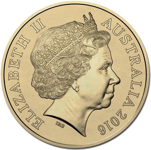 Fourth crowned portrait of HM Queen Elizabeth II facing right, wearing the Girls of Great Britain and Ireland tiara, framed by inscriptions ELIZABETH II, AUSTRALIA, and the coin's mintage year, "2016" below.