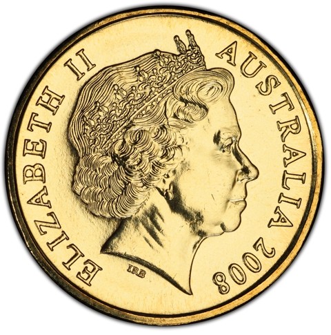 Fourth crowned portrait of HM Queen Elizabeth II facing right, wearing the Girls of Great Britain and Ireland tiara, framed by inscriptions ELIZABETH II, AUSTRALIA, and the coin's mintage year, "2008" below.