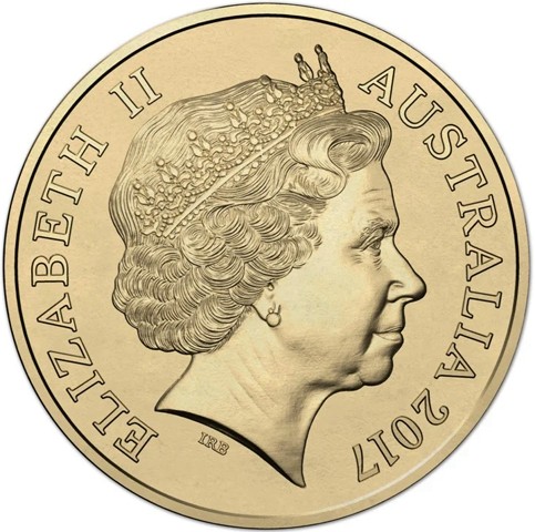 Fourth crowned portrait of HM Queen Elizabeth II facing right, wearing the Girls of Great Britain and Ireland tiara, framed by inscriptions ELIZABETH II, AUSTRALIA, and the coin's mintage year, "2017" below.