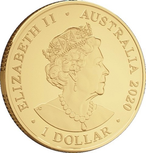 6th crowned portrait of HM Queen Elizabeth II facing right (the Commonwealth effigy), wearing the George IV State Diadem, the Coronation Necklace and Earrings framed by inscriptions ELIZABETH II, AUSTRALIA, and the coin's mintage year, "2020" below.