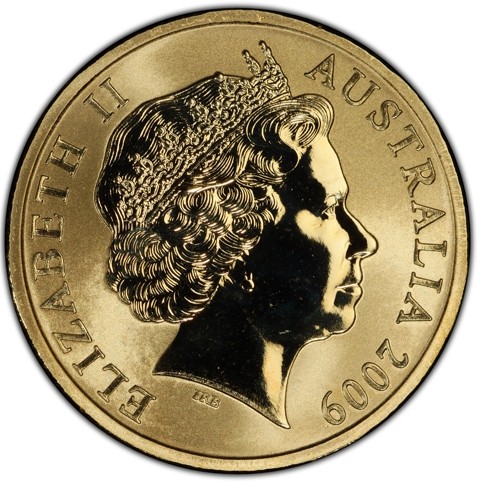 Fourth crowned portrait of HM Queen Elizabeth II facing right, wearing the Girls of Great Britain and Ireland tiara, framed by inscriptions ELIZABETH II, AUSTRALIA, and the coin's mintage year, "2009" below.