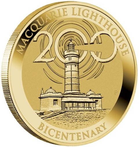 The reverse of the coin is a depiction of the historic lighthouse with a representation of the beams of light that are a beacon to vessels entering Sydney Harbor in darkness. Also included in the design are the inscriptions "MACQUARIE LIGHTHOUSE BICENTENARY", "200" and The Perth Mint’s traditional "P mint mark.
