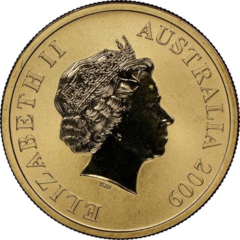 Fourth crowned portrait of HM Queen Elizabeth II facing right, wearing the Girls of Great Britain and Ireland tiara, framed by inscriptions ELIZABETH II, AUSTRALIA, and the coin's mintage year, "2009" below.