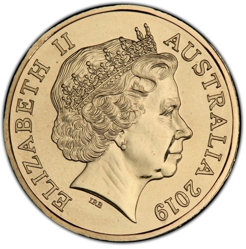Fourth crowned portrait of HM Queen Elizabeth II facing right, wearing the Girls of Great Britain and Ireland tiara, framed by inscriptions ELIZABETH II, AUSTRALIA, and the coin's mintage year, "2019" below.