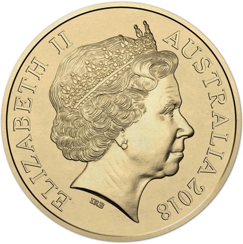 Fourth crowned portrait of HM Queen Elizabeth II facing right, wearing the Girls of Great Britain and Ireland tiara, framed by inscriptions ELIZABETH II, AUSTRALIA and the coin's date of mintage "2018" inscribed below.