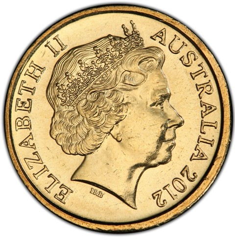 Fourth crowned portrait of HM Queen Elizabeth II facing right, wearing the Girls of Great Britain and Ireland tiara, framed by inscriptions ELIZABETH II, AUSTRALIA, and the coin's mintage year, "2012" below.