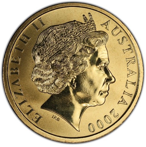 Fourth crowned portrait of HM Queen Elizabeth II facing right, wearing the Girls of Great Britain and Ireland tiara, framed by inscriptions ELIZABETH II, AUSTRALIA, and the coin's mintage year, "2000" below.