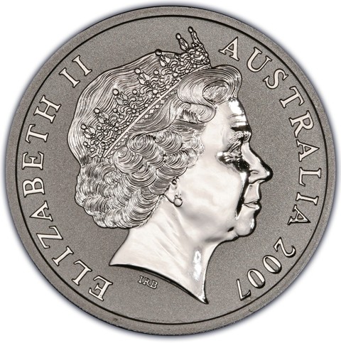 Fourth crowned portrait of HM Queen Elizabeth II facing right, wearing the Girls of Great Britain and Ireland tiara, framed by inscriptions ELIZABETH II, AUSTRALIA, and the coin's mintage year, "2007" below.