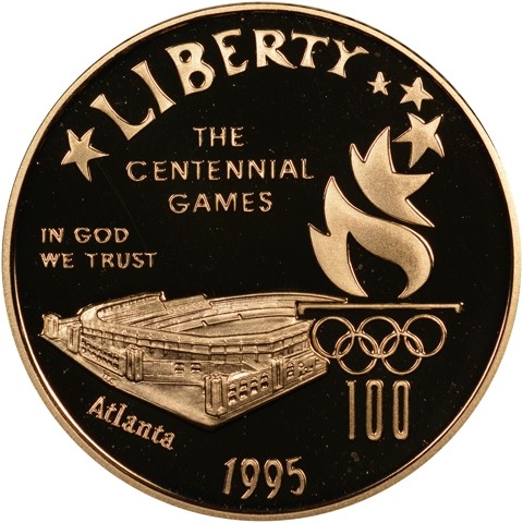 The obverse features a design of the Olympic Stadium of the 1996 Olympic Games and the Olympic Games logo.