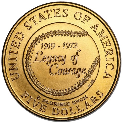 Reverse design: A baseball design, with the years of Robinson's life, 1919-1972, and the inscription, "Legacy of Courage," in the center.