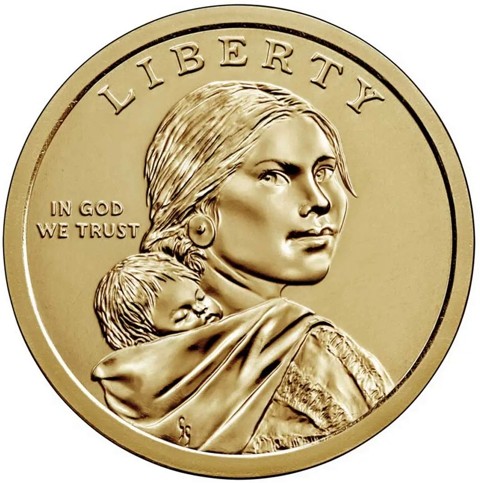 The obverse design continues to feature a portrait of the central figure of Sacagawea carrying her infant son Jean-Baptiste. Inscriptions are “LIBERTY” and “IN GOD WE TRUST.” The coins continue to retain their distinctive edge lettering and golden color.