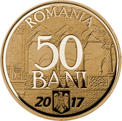 Details of the Brâncovenesc architectural style, the inscription “ROMANIA” in an arc, the denomination, the Coat of Arms of Romania and the year of issue. Letter “N” inscribed on the base of the first column, as a distinctive sign of the collector coin.