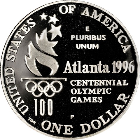 The reverse of features the mark of the Atlanta Committee for the Olympic Games which is positioned to the left of the design, a torch and flame, and the words Atlanta 1996.