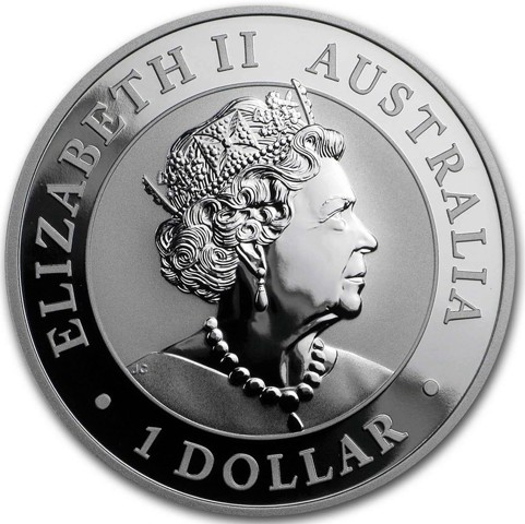 6th crowned portrait of HM Queen Elizabeth II facing right (the Commonwealth effigy), wearing the George IV State Diadem, the Coronation Necklace and Earrings framed by inscriptions “ELIZABETH II,” “AUSTRALIA,” and the face value “1 DOLLAR.”