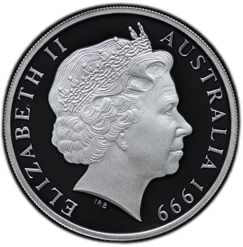 Fourth crowned portrait of HM Queen Elizabeth II facing right, wearing the Girls of Great Britain and Ireland tiara, framed by inscriptions ELIZABETH II, AUSTRALIA, and the coin's mintage year, "1999" below.