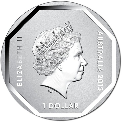 Fourth crowned portrait of HM Queen Elizabeth II facing right, wearing the Girls of Great Britain and Ireland tiara. surrounded by the inscriptions “ELIZABETH II,” “AUSTRALIA, 2015,” and the face value “1 DOLLAR.”