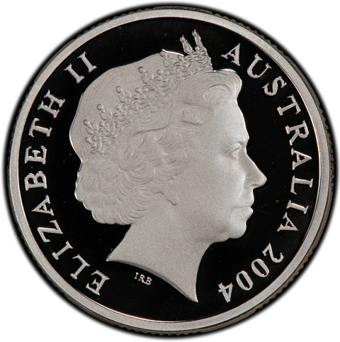 Fourth crowned portrait of HM Queen Elizabeth II facing right, wearing the Girls of Great Britain and Ireland tiara, framed by inscriptions ELIZABETH II, AUSTRALIA, and the coin's mintage year, "2004" below.