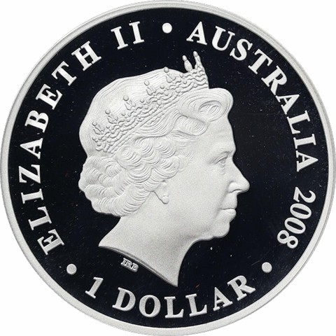 The obverse of the coin features the effigy of Queen Elizabeth II. The portrait depicts the Queen wearing the Girls of Great Britain and Ireland tiara, facing right, and is surrounded by the legend “ELIZABETH II,” “AUSTRALIA,2008,” and the denomination “1 DOLLAR.”