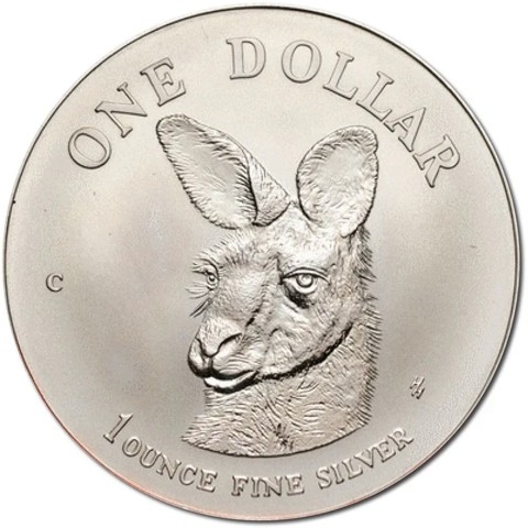 Within a plain border, the reverse of the coin depicts the head of an adult Eastern Grey Kangaroo facing quarter left. In the left field, the C (for Canberra) mint mark of the Royal Australian Mint. Below right, the monogram of the designer (HH.) surrounded by, the face value ONE DOLLAR, above and the precious the metal, weight, and purity below.