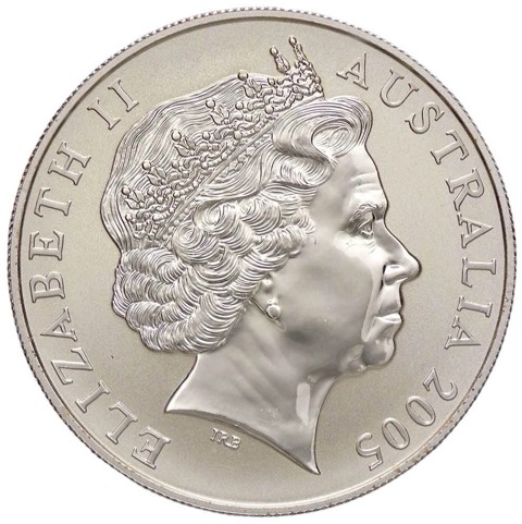 Fourth crowned portrait of HM Queen Elizabeth II facing right, wearing the Girls of Great Britain and Ireland tiara, framed by inscriptions ELIZABETH II, AUSTRALIA, and the coin's mintage year, "2005" below.