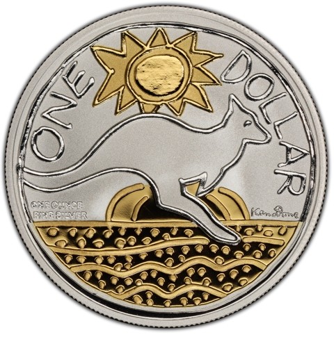 1 Dollar - Elizabeth II - Ken Done Kangaroo, Gilded - 4th Portrait, Silver Kangaroo (2009)