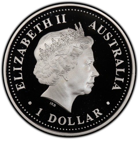 Fourth crowned portrait of HM Queen Elizabeth II facing right, wearing the Girls of Great Britain and Ireland tiara. framed by inscriptions ELIZABETH II, AUSTRALIA, 1 DOLLAR, 2000. Denomination and the coin's date of mintage inscribed below.