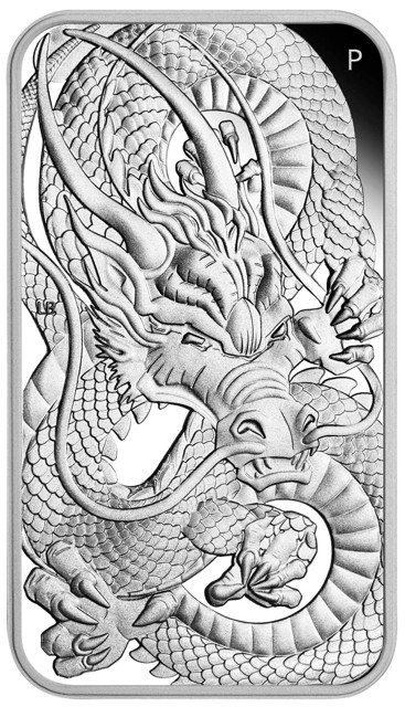 Depicted as serpentine-shaped creatures with piercing eyes, horns, whiskers, scales, and sharp claws, mythological dragons have been part of Chinese culture for thousands of years. Despite their fearsome appearance, they are revered as benevolent creatures with divine origins. Said to offer humanity guidance and protection. The coin’s reverse also includes a security feature in the form of a micro-laser engraved The Perth Mint’s “P” mintmark above right and the designer's initials "LB" in tiny letters at the left side on the scales of the dragon.