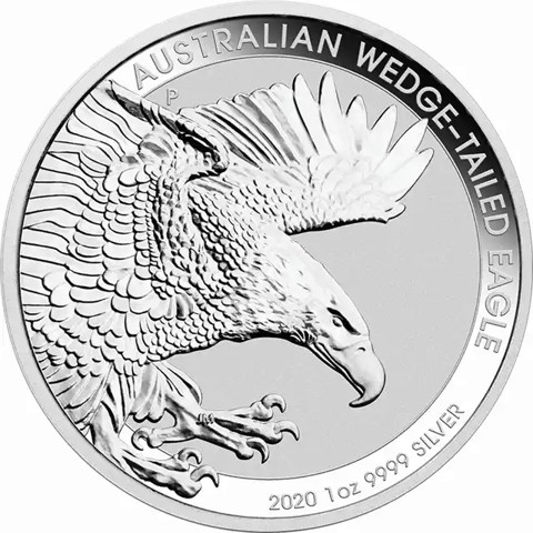 The coin pays tribute to Australia’s largest bird of prey by depicting a close-up representation of a swooping wedge-tailed eagle with its talons outstretched ready to strike. The inscriptions read "AUSTRALIAN WEDGE-TAILED EAGLE" around above right, "2020 – 1 oz 9999 SILVER" found around below denotes the year, weight, content, and purity, with the Perth Mint “P” mintmark completing the design at the left side and the designer's initials (JM) appears discreetly in the eagle's left leg.
