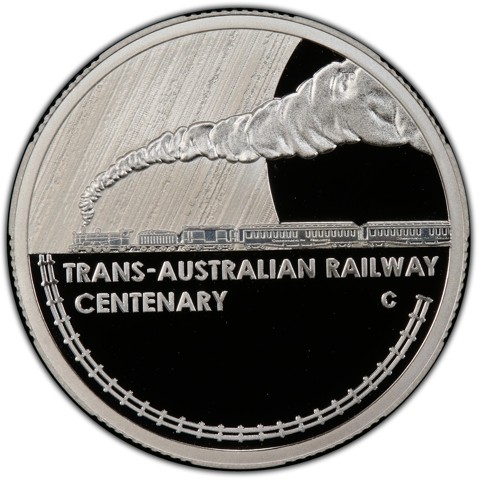 The coin design features a stylised version of the train that first made the journey 100 years ago, the G class steam locomotive, a coal cart, service cart and 2 sleeper carriages. 16 of these G class steam locomotives serviced the line until larger and faster locomotives in the 1930’s. With steam billowing above the train and to the right is a representation of the sun and to the left the sky. Below around the edge is a depiction of a train track. The designers initials “TD” feature in the plume of smoke.