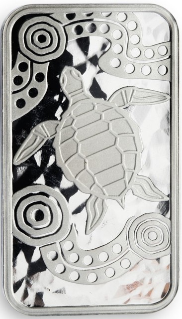 The reverse showcases an artistic depiction of a sea turtle, crafted in an Aboriginal dot-painting style, symbolizing wisdom, perseverance, and connection with the ocean. Around the turtle, circular motifs and flowing patterns evoke the rhythm of water and traditional Dreamtime storytelling. Struck in fine Silver with a mirror-like finish, this rectangular coin beautifully combines numismatic elegance with indigenous cultural heritage.