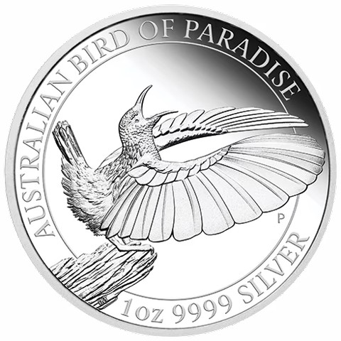 The coin’s reverse depicts a representation of a Victoria’s Riflebird perched on a branch with its wings outstretched and its mouth wide open. The design includes the inscription of series "AUSTRALIAN BIRD OF PARADISE" around above, the coin’s metal, weight and purity"1oz 9999 SILVER" is inscribed close to the bottom rim. In the right field, The Perth Mint’s ‘P’ mintmark appears and the the designer's initials (TV) are also incorporated into the design on a branch.