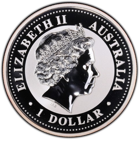 Fourth crowned portrait of HM Queen Elizabeth II facing right, wearing the Girls of Great Britain and Ireland tiara. surrounded by the inscriptions “ELIZABETH II,” “AUSTRALIA,” and the face value “1 DOLLAR.”