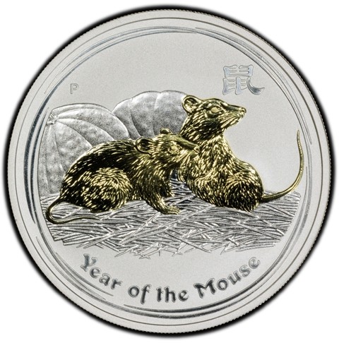 1 Dollar - Elizabeth II - Year of the Mouse, Gilt - 4th Portrait, Lunar Series II (2008)