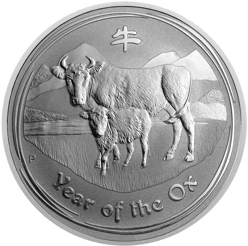 The reverse depicts a mother ox with her calf standing in a rice field, framed by distant mountains and a flowing river. Above them appears the Chinese character (牛) for “Ox,” while at the base is the inscription “Year of the Ox.” This touching family scene highlights the values of diligence, loyalty, and harmony, which are central to the zodiac sign. In the left field, The Perth Mint “P” mintmark appears.