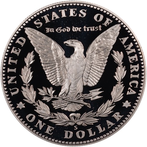 The reverse design is a replica of the 1904 Morgan Silver Dollar eagle reverse, designed by George T. Morgan.