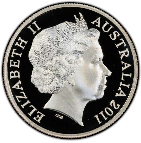 Fourth crowned portrait of HM Queen Elizabeth II facing right, wearing the Girls of Great Britain and Ireland tiara, framed by inscriptions ELIZABETH II, AUSTRALIA, and the coin's mintage year, "2011" below.