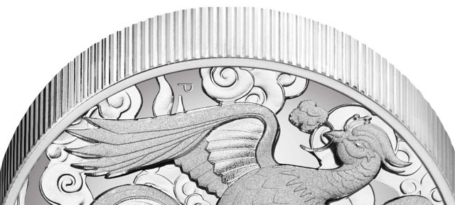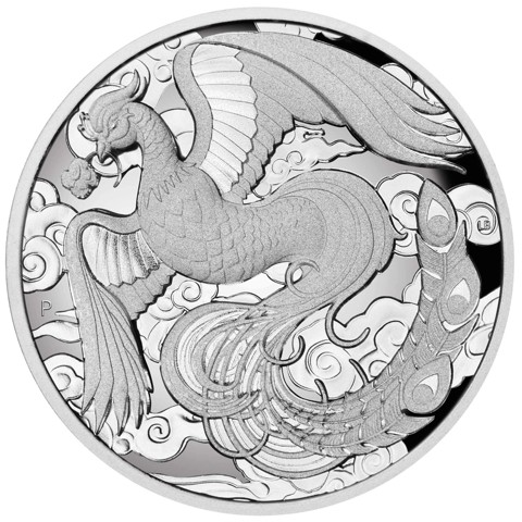 The coin’s fabulous artistry portrays a phoenix in flight in customary fashion with features from a range of different birds. In its beak is the flower of a paulownia tree, said to be the only species on which the phoenix will perch. This phoenix is colored in its traditional red and gold hues with its wings extended. Also included in the design are stylized representations of clouds, symbols of abundance and good fortune. The initials L.B. are shown for the designer, Lucas Bowers and The Perth Mint’s ‘P’ mintmark.