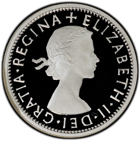 Fourth crowned portrait of HM Queen Elizabeth II facing right, wearing the Girls of Great Britain and Ireland tiara. Deamination is placed below with date.