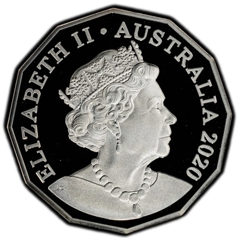 6th crowned portrait of HM Queen Elizabeth II facing right (the Commonwealth effigy), wearing the George IV State Diadem, the Coronation Necklace and Earrings framed by inscriptions “ELIZABETH II,” “AUSTRALIA,” date is placed below.