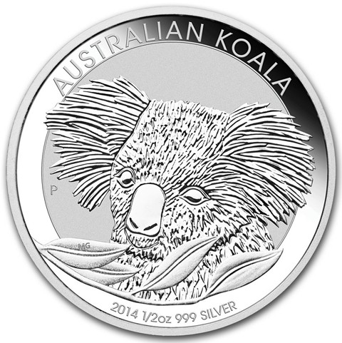 The reverse of the coin features an adult koala with a spray of gum leaves. Inscriptions encircle the outer edge of each coin. "Australian Koala" is at the top while "2014", the weight, and "999 Silver" are toward the bottom. The Perth Mint's mark, "P," is included at the left side and the designer's initials "MG" in tiny letters below right on leaves.