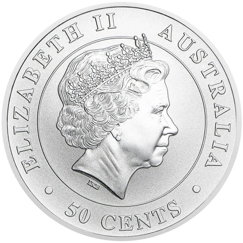 Fourth crowned portrait of HM Queen Elizabeth II facing right, wearing the Girls of Great Britain and Ireland tiara. framed by inscriptions ELIZABETH II, AUSTRALIA, 50 CENTS. Denomination is placed below.
