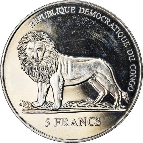 Country name in French above the Laurent Kabila regime (standing lion) and date below.
