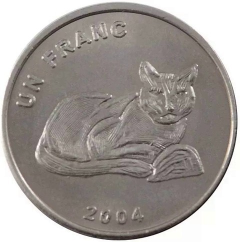 1 Franc - Animal: African Golden Cat (2004)