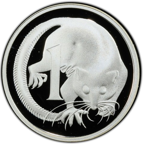 The reverse represented a feather tailed glider designed and sculpted by Stuart Devlin. Slightly left of center, the denomination 1 [cent]. Below the end of the glider's tail in tiny letters, the initials of engraver (SD).